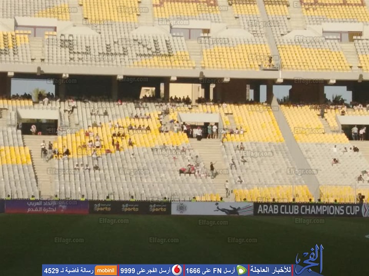 شهدت مدرجات ملعب برج العرب بالاسكندرية ، حضور جماهيرى ضعيف من جماهير القلعة البيضاء ، وذلك قبل ساعة ونصف من انطلاق مباراة الفارس الابيض مع القادسية الكويتى ، فى ذهاب دور ال 32 لدورى ابطال العرب ، والتى ستنطلق فى تمام السابعة مساءا .