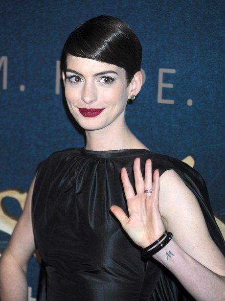 بينما اعتمدت Anne Hathaway آنا هاثواي على الأحمر العنبي الصريح، النصف لامع، وبرزت معه عيناها الواسعتان بـ الماسكرا، وتركت حواجبها الكثيفة السوداء على طبيعتها.