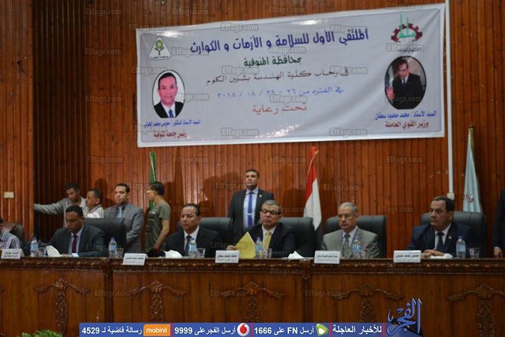 جاء خلال افتتاح محمد سعفان وزير القوى العاملة، الملتقى الأول للسلامة والأزمات والكوارث لزياذة التوعية والسلامة المهنية في كافة القطاعات الحكومية وغير الحكومية، بحضور والدكتور أيمن مختار سكرتير عام المحافظة ، وعفيفى محمد عفيفى مدير مديرية القوى العاملة بالمنوفية، والدكتور عبد الرحمن قرمان نائب رئيس الجامعة لشئون خدمة المجتمع، والدكتور عادل مبارك نائب رئيس الجامعة لشئون التعليم والطلاب، والدكتور علوى الخولى عميد كلية الهندسة، وأيمن ربيع رئيس الإدارة المركزية للسلامة والصحة المهنية، وكيميائي محمد عبد الستار منتصر مدير عام الإدارة.