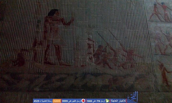 وتنفرد "الفجر" بنشر عدد من الصور من داخل مقبرة النبيل "تي" قبل تفقد سير العمل بها بساعات، حيث يتم ترميم النقوش بها ترميمًا دقيقًا بواسطة البعثة العاملة هناك.