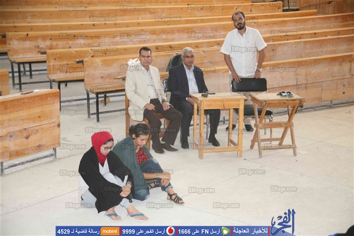 شهد الدكتور عباس منصور رئيس جامعة جنوب الوادي والدكتور محمد ابو الفضل بدران نائب رئيس الجامعة لشئون التعليم والطلاب بروفات العرض المسرحي بعنوان " من يملك النار " التي يقوم بها طلاب مسرح جامعة جنوب الوادي.