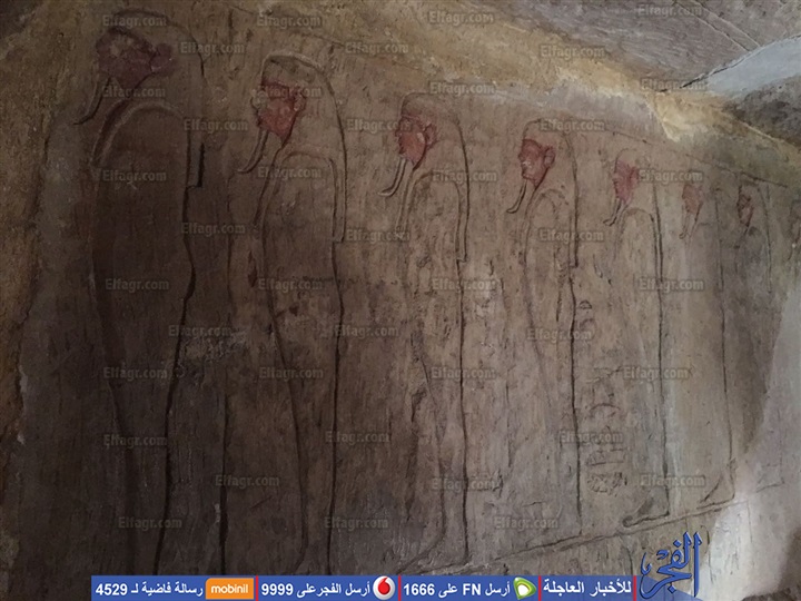 وتابع عشماوي أن المقبرة زينت بالعديد من النقوش والمناظر بعضها مازال يحتفظ بألوانه زاهية، من أهم نقوش المقبرة نقش القائد باغرد ابن ايزيس عند المدخل والذى صور واقفا يضع يده فوق رأسه ويرثى سيده ويعبر، عن آلامه لفقد سيده، كما نجد خرطوش الملك أوسركون الثاني وستة أسطر رأسية من الكتابة الهيروغليفية.