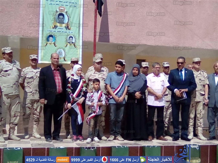 وأشار "الوصيف" أن العميد محمد راشد قائد بقوات الدفاع الجوي العسكري، قام بتكريم أبناء الشهيد بمدرسة عمار بن ياسر الإعدادية وذلك بتقديم الهدايا والشكر والتفاخر بوالدهم، مضيفا أن الشهداء ضحوا بأرواحهم، وأن الدولة تقدم لهم يد العون في أي خدمة يطلبونها.