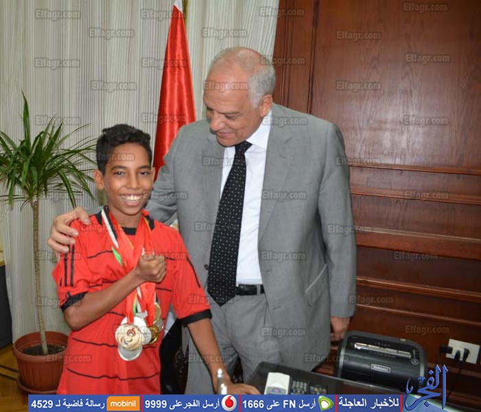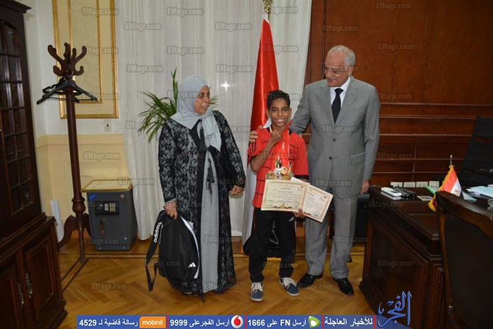 وكان المحافظ قد تقابل مع السيدة وابنها خلال جولاته الميدانية بمنطقة إمبابة ونقلت السيدة رغبة ابنها فى مقابلة المحافظ، مؤكدا المحافظ أنه سعيد بمقابلة الطالب والحاصل على العديد من الميداليات فى البطولات المحلية واستعداده لتقديم كافة أوجه الرعاية من أجل تنمية مواهبه .