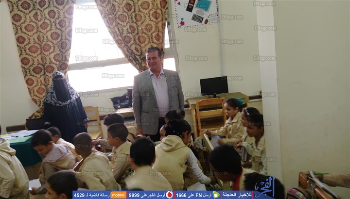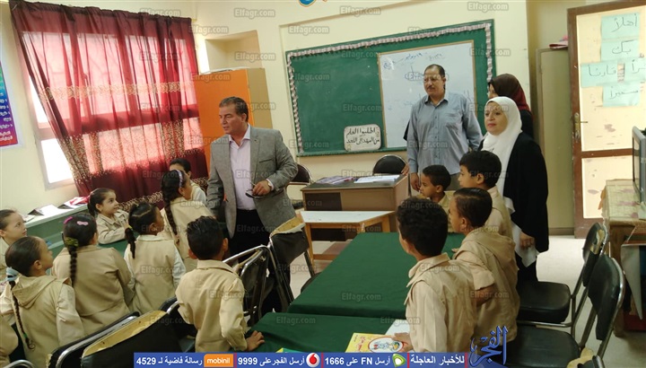كما حضر حصة رياضيات بالصف الثالث الابتدائي وحضر حصة حاسب آلي بالصف الرابع الابتدائي وناقش التلاميذ ومنح التلميذ محمد على عويس شهادة تقدير وحث التلاميذ على الجد والاجتهاد من أجل النجاح والتفوق، ونبه مشددًا على إدارة المدرسة بضرورة الانتهاء فورًا من تسليم الكتب الدراسية لجميع تلاميذ المدرسة، وضرورة المتابعة الفنية للمعلمين بالفصول، واعتماد وترقيم دفاتر التحضير، والاهتمام بطابور الصباح وحضور مدير المدرسة والسادة المعلمين الشرفاء طابور الصباح مع تفعيل الاذاعة المدرسية وتحية العلم وترديد النشيد الوطني