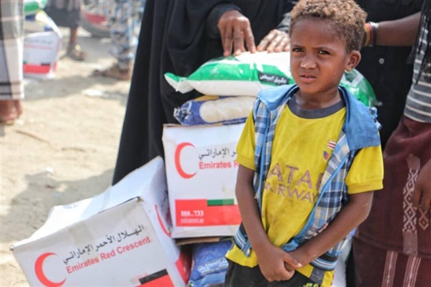 الهلال الأحمر الإماراتي، ولم تألوا دولة الإمارات العربية المتحدة جهداً في إغاثة المحتاجين والنازحين والأسر المتعففة في عموم البلاد.