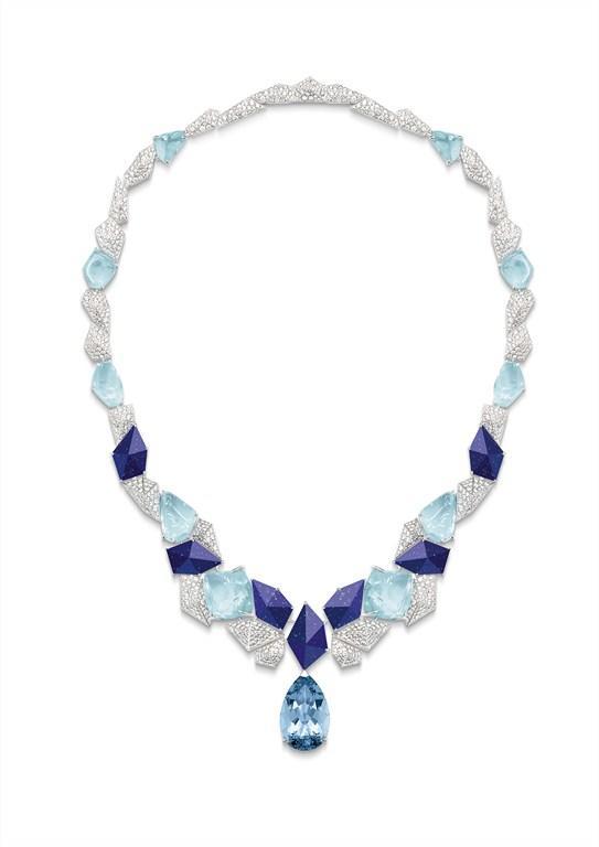 كما بإمكانك أن تتألقي عقد انفنيت بلو Infinite Blue من مجموعة صانلايت إسكايب Sunlight Escape من بياجيه Piaget والمصنوع أيضاً من الذهب الأبيض وتزيّنها أحجار الماس والأكوامارين والتورمالين بارابيا واللازورد.