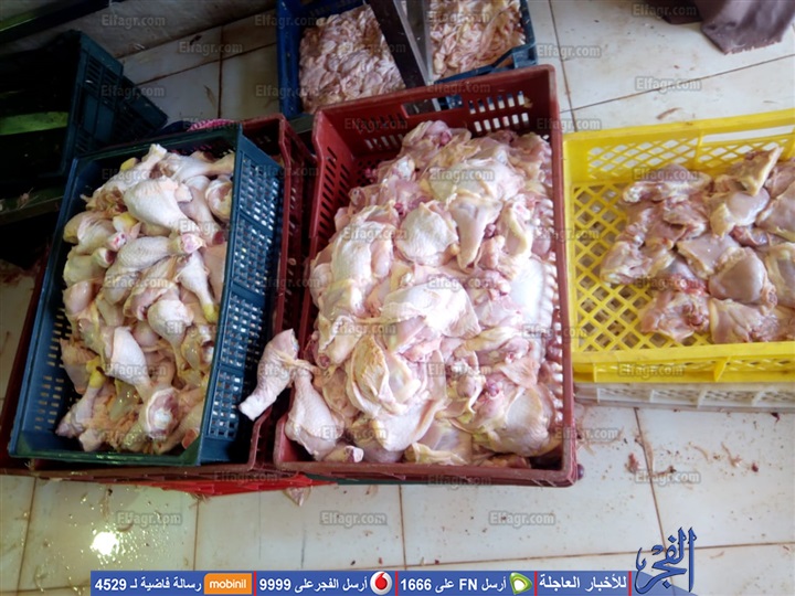 وتم العثور بداخله على 735 كيلو (عفشه وهياكل دواجن)،291 كيلو فليه دواجن، 351 كيلو دبوس، 389 كيلو شيش، 294 كيلو أوراك، 48 كيلو كبد وقوانص، وجميعها غير صالحة للاستخدام الأدمي وغير مصحوبة بأية مستندات تدل على مصدرها.