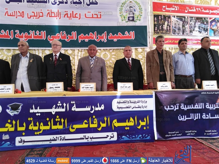 شهد على عبد الرؤوف وكيل وزارة التربية والتعليم بالدقهلية، اليوم الخميس، الحفل السنوى الذى اقيم لتخليد ذكرى الشهيد البطل عميد أركان حرب إبراهيم الرفاعى ابن قرية الخلاله التابعه لمركز بلقاس بمدرسة الشهيد إبراهيم الرفاعى الثانويه المشتركه بحضور مجموعة 39 قتال وماهر بركات مدير عام الإدارة التعليمية ببلقاس.