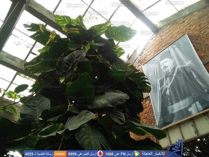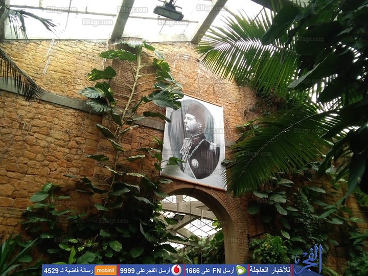 صورتي الملكين فؤاد وفاروق تستقبل الزائر داخل الصوبة في إشارة ضمنية إلى تاريخ تلك الصوبة الملكية، التي تحتفظ بأجوائها الهادئة المتصلة بطبيعة حدائق المنتزه.