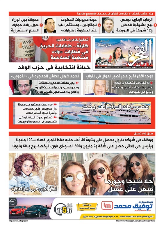 عدد الفجر الجديد: عدد مميز بادر بحجز نسختك العدد الأسبوعي الأربعاء 14/نوفمبر/2018 - 04:37 م 11/14/2018 4:37:00 PM غلاف عدد الفجر الإسبوعي عدد الفجر عادل حمودة جريدة الفجر الورقية جريدة الفجر الاسبوعية تصفح عدد الفجر العدد الورقى العدد الاسبوعي PDF