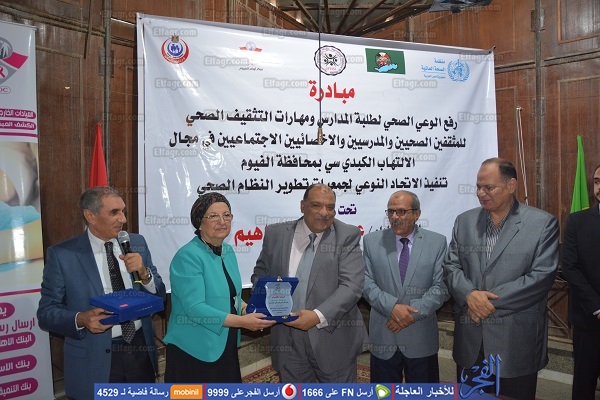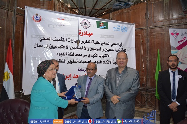 بحضور اللواء عصام سعد،محافظ الفيوم، والدكتور صلاح أبو طالب مدير مركز أورام الفيوم والدكتور خالد الخشاب عميد كلية طب الفيوم ومدير المستشفيات الجامعية والدكتورة وجيده أنور رئيس الاتحاد النوعى لجمعيات تطوير النظام الصحى والدكتور عادل عبد المنعم وكيل وزارة التربية والتعليم والدكتورة أمال هاشم وكيل وزارة الصحة بالفيوم والدكتورعلاء حشيش ممثل منظمة الصحة العالمية والأستاذ محمد أبو الحارث مدير إدارة غرب التعليمية وعدد من القيادات التنفيذية بمحافظة الفيوم.