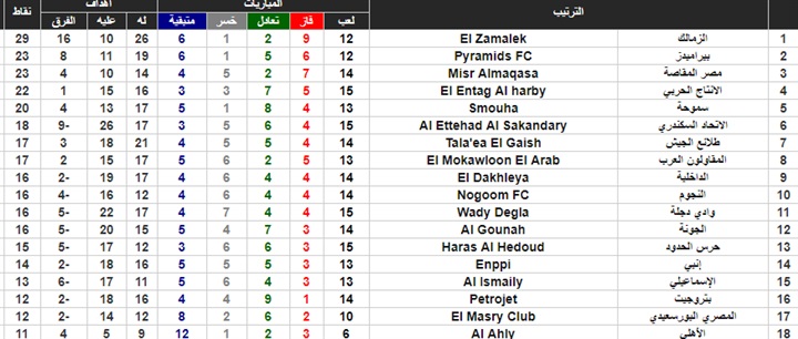ويواصل الفارس الأبيض تصدره لجدول بطولة الدوري برصيد 29 نقطة، فيما يأتي بيراميدز في المركز الثاني برصيد 23 نقطة، وبنفس الرصيد يحتل مصر المقاصة مركز الثالث.