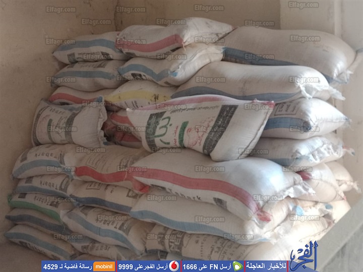 مدعم زنة 50 كجم، 73 شيكارة معباة نخالة زنة 45 كجم، وبلغ إجمالي المضبوطات 8 أطنان