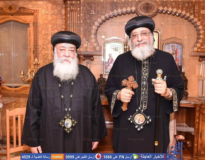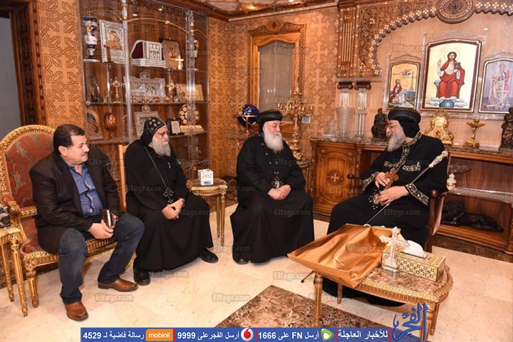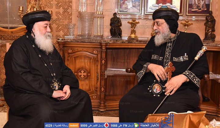 استقبل قداسة البابا تواضروس الثاني، بابا الإسكندرية، بطريرك الكرازة المرقسية، اليوم الإثنين، بالمقر البابوي بالكاتدرائية المرقسية بالعباسية، نيافة الأنبا هدرا، مطران أسوان، ورئيس دير القديس الأنبا باخوميوس بحاجر إدفو، حيث أطمئن قداسته على سلامة نيافة الأنبا هدرا بعد عمليتي تغيير مفصلي الركبة التي أجراها مؤخرًا بالولايات المتحدة الأمريكية.