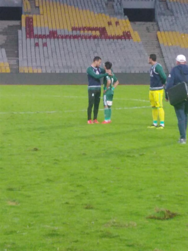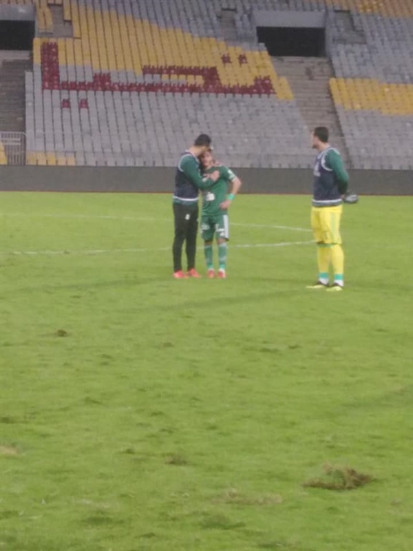 وحرص بعض زملاءه في الفريق على مواساته عقب الخسارة من الفريق الأبيض بهدفين في المواجهة المؤجلة من الأسبوع الحادي عشر ببطولة الدوري الممتاز.