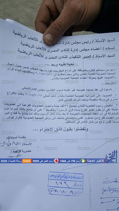 وهدد أعضاء الجمعية العمومية بالاعتصام داخل مقر النادي في حال رفض تسلم متطلباتهم وتنفيذها في أقرب وقت ممكن.