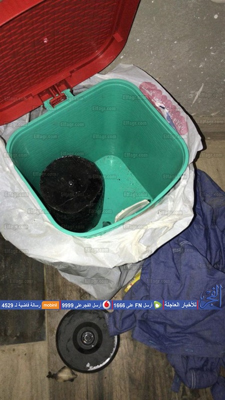 عيار 9 مم وكمية كبيرة من الطلقات من ذات العيار، كما عُثر بالوكر على عبوة