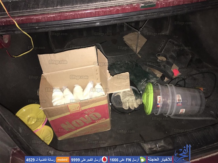 السيارتين على كميات من الدوائر الكهربائية ومواد وأدوات تصنيع العبوات الناسفة.