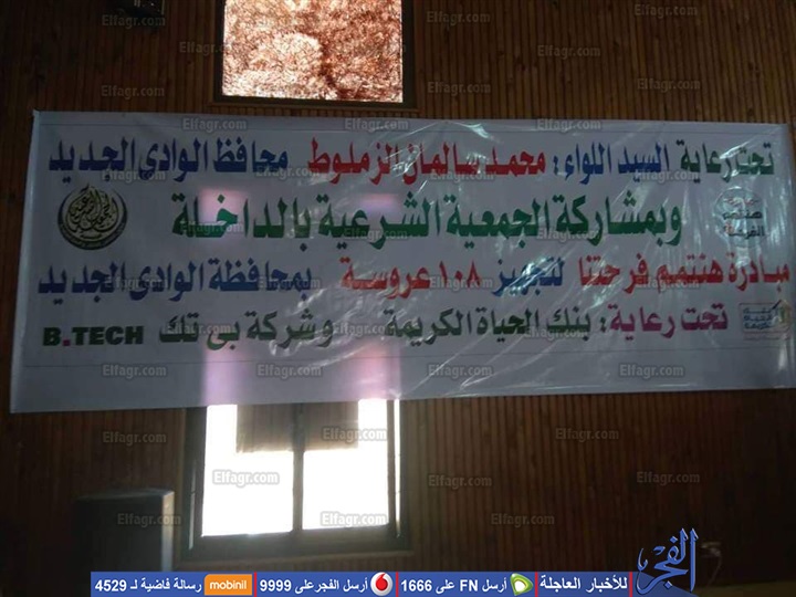 وأكد رئيس مركز الداخلة بالوادي الجديد، كمال إبراهيم، إقامة احتفالية شعبية بمركز الداخلة لتسليم 6 قطع من محتويات جهاز العروسين لعدد 108 مستفيدين من الأيتام أبناء مناطق الداخلة والفرافرة وبلاط.