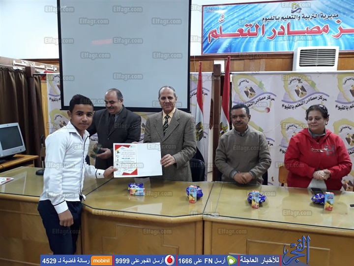 قام اليوم الدكتور محمد عبدالله وكيل مديرية التربية والتعليم بالفيوم بتكريم طلاب أيسف للعلوم والهندسة2019 تعليم فني، والمشاركين فى المعرض المحلي للعلوم والهندسة بالفيوم، تقدم وكيل المديرية بالتهنئة للطلاب الفائزين والذي تم تصعيدهم للمشاركة بمعرض أيسف للعلوم والهندسة على مستوى الجمهورية.