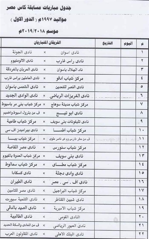 قرعة مباريات الدور الأول لكأس مصر مواليد 1997 (صور)