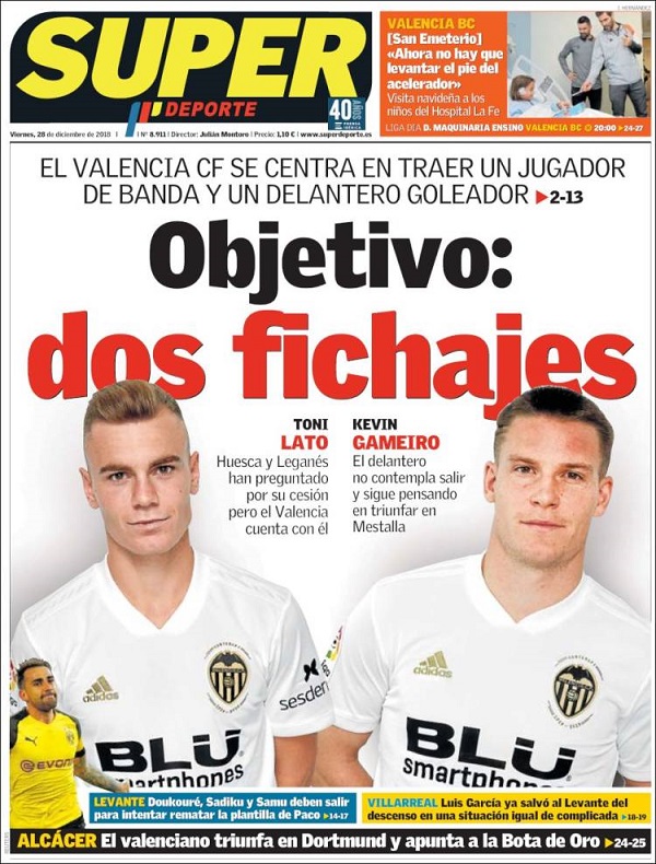 وقالت صحيفة "سوبر ديبورتي": "هدف فالنسيا صفقتين".
