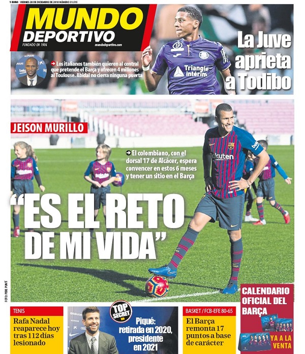 وتصدر جيسون موريلو الصفحة الأولى لـ"موندو ديبورتيفو" بتصريحه: "هذا هو تحدي حياتي".