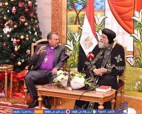 وقدم الوفد التهنئة قداسة البابا بمناسبة عيد الميلاد المجيد، وتكون الوفد الإنجيلي المصري من ممثلي مختلف الكنائس الإنجيلية.