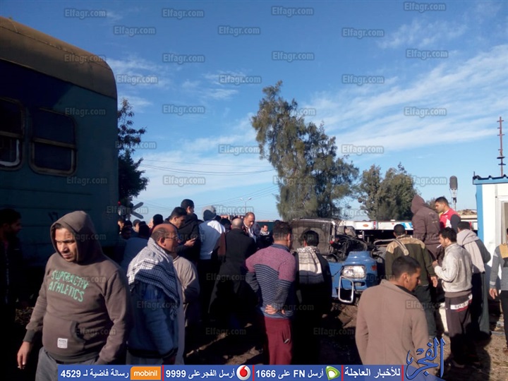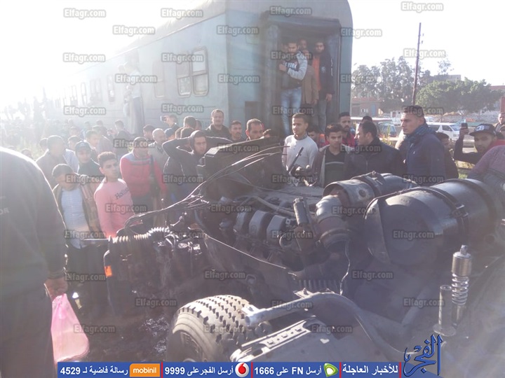 عاجل.. قطار يصطدم بسيارة نقل بالبحيرة (صور)