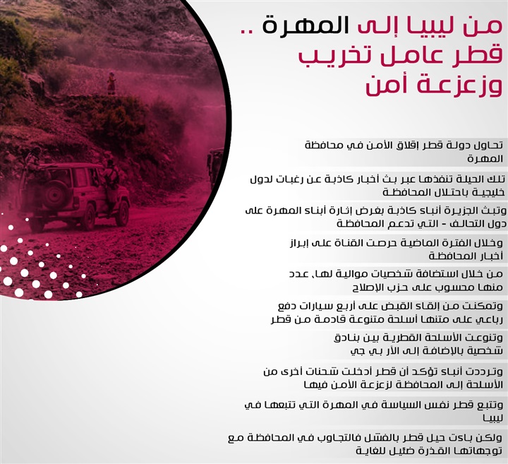 من ليبيا إلى المهرة .. قطر عامل تخريب وزعزعة أمن (انفوجراف)