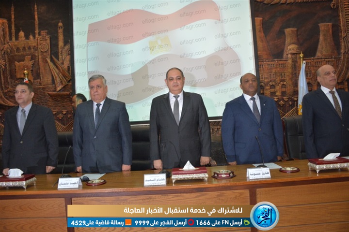 بدأ الحفل بالسلام الجمهورى ثم تلاوة آيات الذكر الحكيم والوقوف دقيقة على أرواح الشهداء.