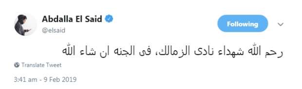 التواصل الاجتماعي "تويتر": "رحم الله شهداء نادي الزمالك في الجنه