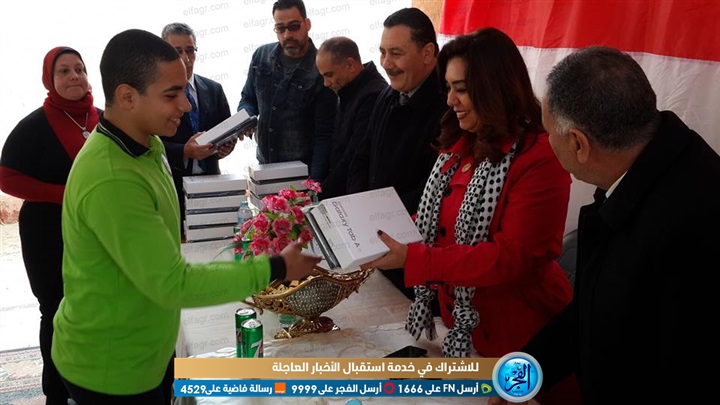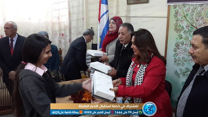 محافظ دمياط ووكيل التعليم يسلمان التابلت لطلاب الصف الأول الثانوي (صور)