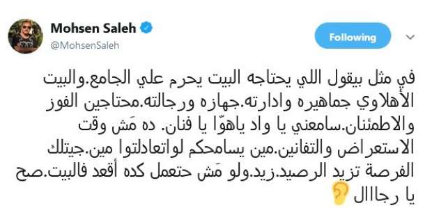 محسن صالح لنجوم الأهلي: اجلسوا في البيت (صورة)