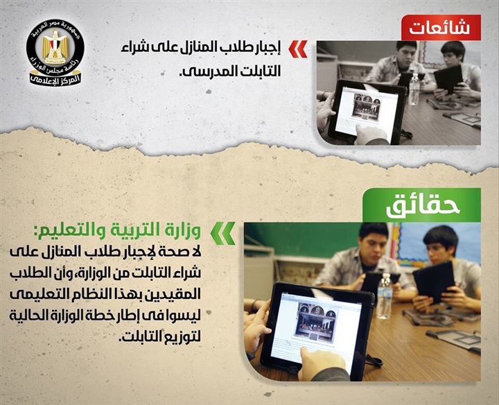 كما نفى المركز ما اثير حول سرقة أجهزة التابلت من إحدى المدارس الثانوية بكفر الشيخ ونفي ما تداول حول فرض زي موحد على المعلمين بالمدارس، كما نفي تغيير قواعد قبول الطلاب الحاصلين على شهادة الثانوية الإنجليزية بالجامعات.
