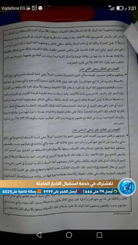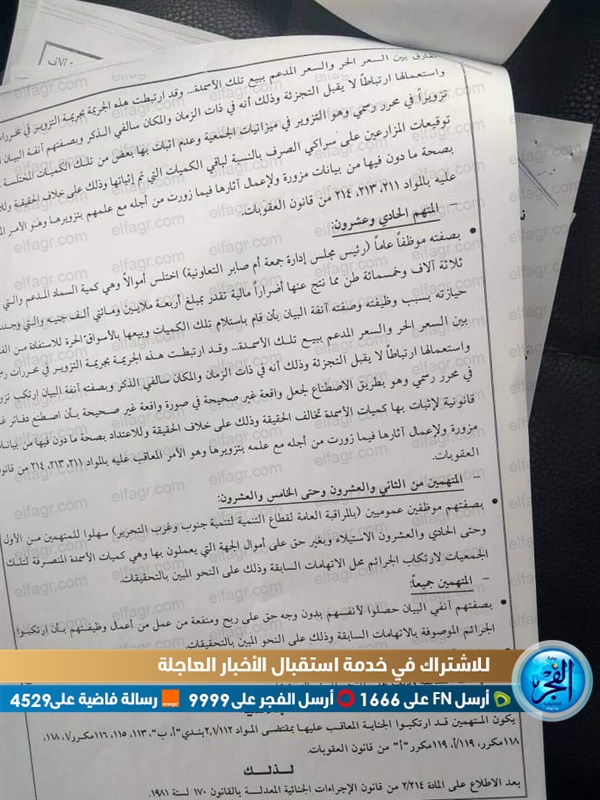 وفيما كشفت تحقيقات النيابة العامة،ان المتهمين من الثاني حتي السابع، بصفتهم موظفين عموميين بجمعية الكفاح التعاونية،اختلسوا أموالا وهي كمية السماد المدعم والتي تبلغ ألف طن تقدر بقيمة مليون مائتي ألف جنيه وذلك عن تزوير المحررات الرسمية الخاصة بتوقيع أمين مخازن الجمعية، والقيام ببيع الأسمدة المدعمة في السوق السوداء والاستفادة من فارق السعر وتحقيق أرباحا غير مشروعة وهو الأمر المعاقب عليه في المواد 211، 213،214 من قانون العقوبات.