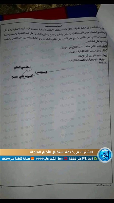 وشمل قرار الإحالة كل من "حمدي ع.ا، مدير جمعية الأخوة التعاونية بمركز بدر سابقا" محبوس"، و"عبد الغني خ.ع" هارب، و"عبد العزيز ا.ا" هارب، و"وليد ر.ع" هارب، و"سمير ر.س" هارب، و"أحمد ح.م مهندس زراعي بجمعية 6 أكتوبر" محبوس، و"وحيد م.خ" هارب، و"سعيد ع.أ رئيس مجلس إدارة جمعية التقوي سابقًا" محبوس، و"سعيد.ع.ا،" محبوس"، مدير جمعية التقوي سابقا، محمد.ش.د" هارب"،محمد.س.م " هارب"، "جلال.م.ع" هارب"،محمد.م.م" هارب"، حسن.ع.م " هارب"، عاصم.ع.م" هارب"، جاد الله.م.ج " هارب"، أحمد.ع.ع" هارب"، محمد.ع.ي" هارب"، صلاح.ع.ر" هارب"، حمدي.أ.ع " هارب"، مبروك.ح.م" هارب"، سعيد.م.م" محبوس"، محمد.أ.ع" هارب"، كامل.ع.ع" هارب"، حمدي.أ.ح" هارب ".