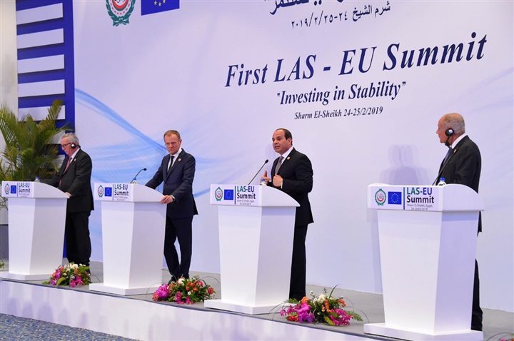 وصرح السفير بسام راضي، المتحدث الرسمي باسم رئاسة الجمهورية، بأن اليوم الثاني من القمة العربية الأوروبية تحت رئاسة السيد الرئيس شهد استئناف بيانات الوفود العربية والأوروبية، والتي أكدت ضرورة تعزيز آليات الشراكة القائمة بين العالمين العربي والأوروبي، واستعرضت أهم التحديات والفرص القائمة في هذا الصدد، كما اتسمت بقدر من المصارحة حول رؤى ومواقف كل دولة تجاه عدد من التهديدات الإقليمية المشتركة وسبل مواجهتها، كالإرهاب والهجرة غير الشرعية وبؤر النزاعات المتفشية بالمنطقة.