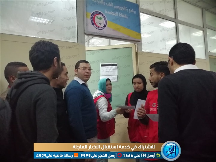 توافد عدد كبير من طلاب كلية الطب والعاملين بها على اللجنة الطبية الموجودة بمقر كلية الطب بجامعة طنطا للفحص ضمن مبادرة الرئيس عبد الفتاح السيسى ١٠٠ مليون صحة للقضاء على فيروس سي والكشف المبكر عن الأمراض غير السارية "السكر والضغط والسمنة التي انطلقت اول أمس بمحافظة الغربية، من خلال 36 فريق طبي مسحي وتستمر حتى نهاية أبريل المقبل.