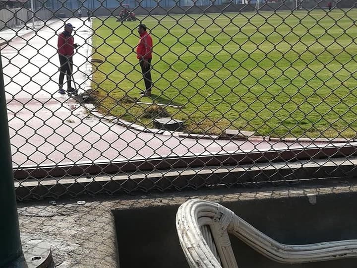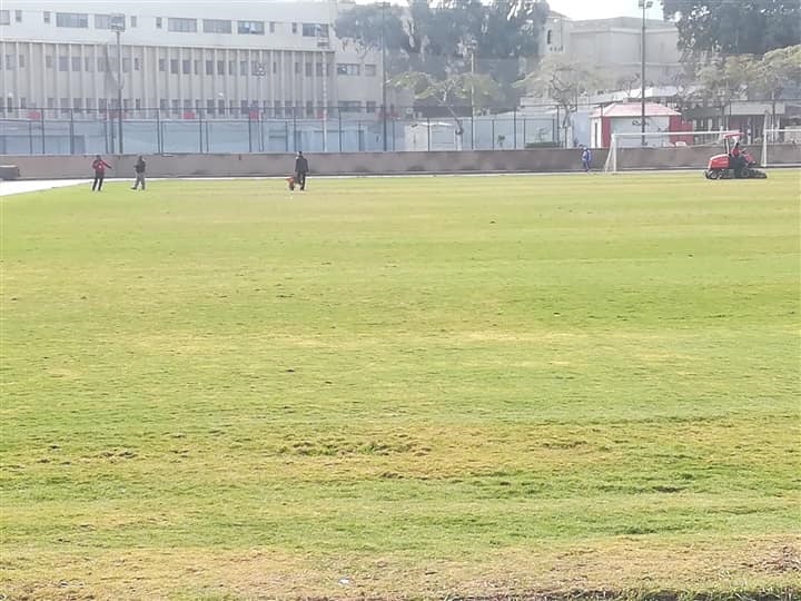 تواجد عمال الصيانة داخل ملعب مختار التتش بمقر النادي الأهلي في الجزيرة، من أجل إجراء صيانة لأرضية الملعب قبل تدريب الفريق الذي أقيم صباح اليوم، الثلاثاء، استعدادًا لمواجهة فيتا كلوب، بدوري أبطال إفريقيا.