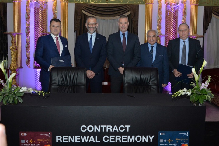 شهد الطيار أحمد عادل رئيس الشركة القابضة لمصر للطيران والسيد حسين أباظة الرئيس التنفيذي الرئيسي وعضو مجلس إدارة البنك التجاري الدولي CIB مراسم تجديد توقيع البروتوكول الخاص بإصدار أول بطاقة ائتمانية مشتركة في مصر “CIB - EGYPTAIR Mileseverywhere”، بحضور الطيار شريف عزت والأستاذ ايهاب غازي مساعدي رئيس الشركة القابضة لمصر للطيران ولفيف من قيادات الشركة الوطنية مصر للطيران والبنك التجاري الدولي وماستركارد CIB وذلك في قصر محمد علي بالمنيل.