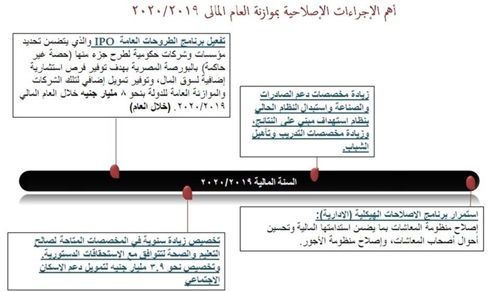إلقاء الضوء على أهم الإجراءات الإصلاحية المستهدفة على جانب الإيرادات والمصروفات والحماية الإجتماعية ونبذة عن حجم الايرادات والمصروفات المستهدفة وموزعة على الأبواب بموازنة العام الجديد