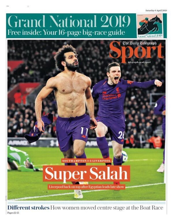 وقالت صحيفة "تيليجراف": "صلاح السوبر"، في إشارة إلى تسجيل النجم المصري محمد صلاح للهدف الثاني في المباراة بعد صيام طويل.