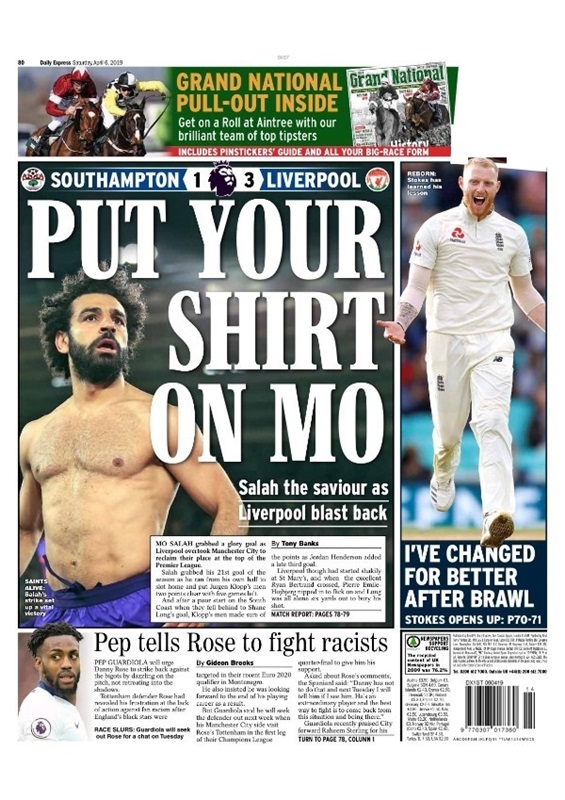 أما صحيفة "ديلي إكسبريس"، فنشرت عنوانا ساخرا يقول "ارتدي قميصك يا مو"، وأضافت "صلاح المنقذ في عودة ليفربول".