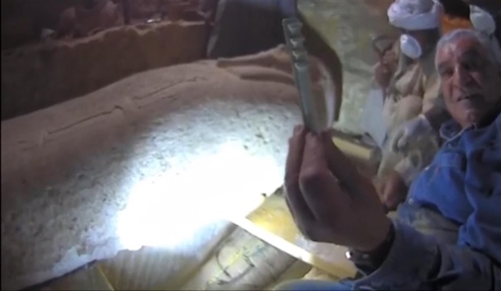 شاهد.. لحظة فتح "حواس" تابوت لأول مرة على الهواء ومفاجآت لم يتوقعها