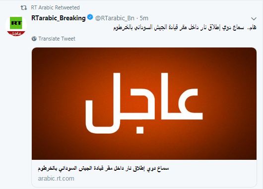 "روسيا اليوم": سماع دوي إطلاق نار داخل مقر قيادة الجيش السوداني بالخرطوم