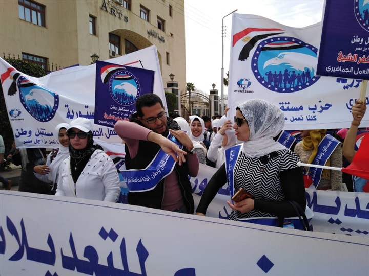 وبدأ الماراثون من أمام مبنى الإدارة العامة لجامعة كفرالشيخ مرورا بديوان عام المحافظة حتى مقرالحزب وحمل الشباب والفتيات اعلام مصر واللافتات المؤيدة للتعديلات الدستورية مرددين الأغانى الوطنية الحماسية.