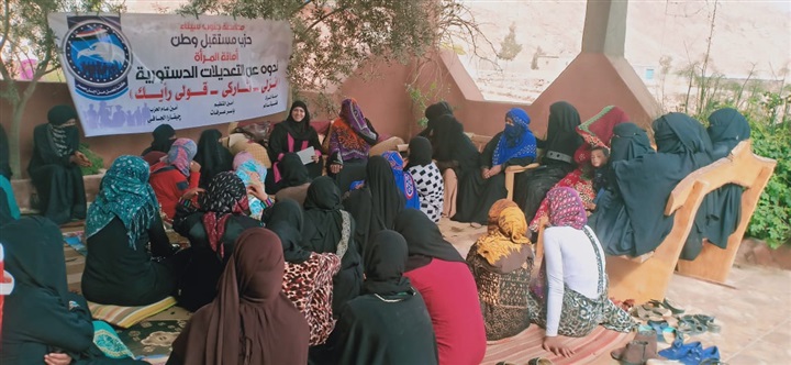 نظمت أمانة المرأة بحزب مستقبل وطن، في محافظة جنوب سيناء، برئاسة النائبة فضية سالم بالتنسيق مع أمينة المرأة بمدينة سانت كاترين، اليوم الأحد، ندوة عن التعديلات الدستورية المقترحة وأهمية المشاركة في الإستفتاء عليها، وذلك بوادي الراحة بمدينة سانت كاترين.