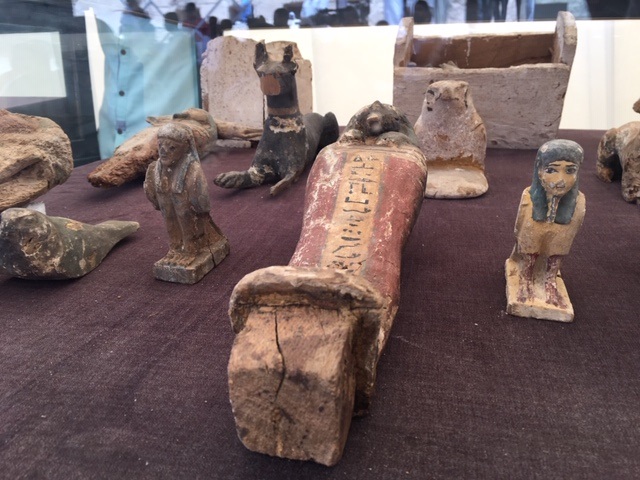 قال الدكتور مصطفى وزيري، الأمين العام للمجلس الأعلى للآثار، إن البعثة العاملة في منطقة ذراع أبو المجا، عثرت في كشفها الجديد "مقبرة الصف"، على العديد من اللقى الأثرية منها مجموعة كبيرة من تماثيل الأوشابتى المختلفة الأحجام والأشكال والمصنوعة من الفيانس الأزرق والخشب، وقناع مجمع من الكارتوناج، وأكثر من 50 ختما جنائزيا لبعض الأشخاص اللذين لم يتم العثور على مقابرهم حتى الاَن.